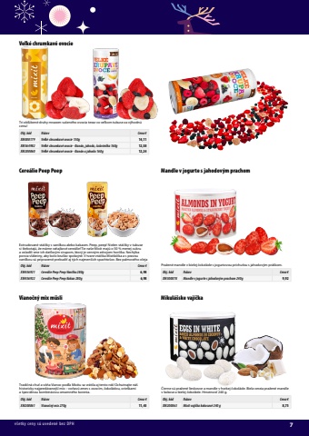 v%u0161etky ceny s%u00fa uveden%u00e9 bez DPH 7Ve%u013ek%u00e9 chrumkav%u00e9 ovocieTri ob%u013e%u00faben%u00e9 druhy mrazom su%u0161en%u00e9ho ovocia teraz vo ve%u013ekom tubuse za v%u00fdhodn%u00fa cenu!Obj. k%u00f3d N%u00e1zov Cena %u20acXM008179 Ve%u013ek%u00e9 chrumkav%u00e9 ovocie 150g 14,11XM564982 Ve%u013ek%u00e9 chrumkav%u00e9 ovocie - Ban%u00e1n, jahoda, %u010du%u010doriedka 160g 12,58XM200060 Ve%u013ek%u00e9 chrumkav%u00e9 ovocie - Ban%u00e1n a jahoda 160g 12,24Mandle v jogurte s jahodov%u00fdm prachomPra%u017een%u00e9 mandle v bielej %u010dokol%u00e1de s jogurtovou pr%u00edchu%u0165ou s jahodov%u00fdm pr%u00e1%u0161kom.Obj. k%u00f3d N%u00e1zov Cena %u20acXM300078 Mandle v jogurte s jahodov%u00fdm prachom 240g 9,92Cere%u00e1lie Peep PeepExtrudovan%u00e9 vt%u00e1%u010diky s vanilkou alebo kakaom. Peep, peep! Nielen vt%u00e1%u010diky v tubuse si %u0161tebotaj%u00fa, %u017ee m%u00e1me ra%u0148ajkov%u00e9 cere%u00e1lie! Tie na%u0161e Mixit maj%u00fa o 50 % menej cukru a osladili sme ich dat%u013eov%u00fdm sirupom, ktor%u00fd je cenn%u00fdm zdrojom hor%u010d%u00edka. Nech%u00fdba porcia vl%u00e1kniny, aby bolo bru%u0161ko spokojn%u00e9. V tvare vt%u00e1%u010dika Mixi%u0165%u00e1%u010dika a s pravou vanilkou s%u00fa pripraven%u00e9 prebudi%u0165 aj t%u00fdch najmen%u0161%u00edch spachto%u0161ov. Bez palmov%u00e9ho olejaObj. k%u00f3d N%u00e1zov Cena %u20acXM456921 Cere%u00e1lie Peep Peep Vanilka 280g 6,98XM456922 Cere%u00e1lie Peep Peep Kakao 280g 6,98Viano%u010dn%u00fd mix m%u00fcsliTradi%u010dn%u00e1 chu%u0165 a v%u00f4%u0148a Vianoc pod%u013ea Mixitu sa vr%u00e1tila aj tento rok! Ochutnajte n%u00e1%u0161 historicky najpred%u00e1vanej%u0161%u00ed mix %u2013 vo%u0148av%u00fa zmes s ovoc%u00edm, %u010dokol%u00e1dou, orie%u0161kami a %u0161peci%u00e1lnou kombin%u00e1ciou omamn%u00e9ho korenia.Obj. k%u00f3d N%u00e1zov Cena %u20acXM200061 Viano%u010dn%u00fd mix 270g 11,45Mikul%u00e1%u0161ske vaj%u00ed%u010dka%u010cierne s%u00fa pra%u017een%u00e9 lieskovce a mandle v horkej %u010dokol%u00e1de. Biela verzia pra%u017een%u00e9 mandle v kokose a bielej %u010dokol%u00e1de. Hmotnos%u0165 240 g.Obj. k%u00f3d N%u00e1zov Cena %u20acXM200063 Mixit vaj%u00ed%u010dka kokosov%u00e9 240 g 8,75