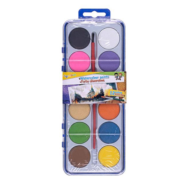 Školské akvarelové farby Gimboo - 12 farieb so štetcom