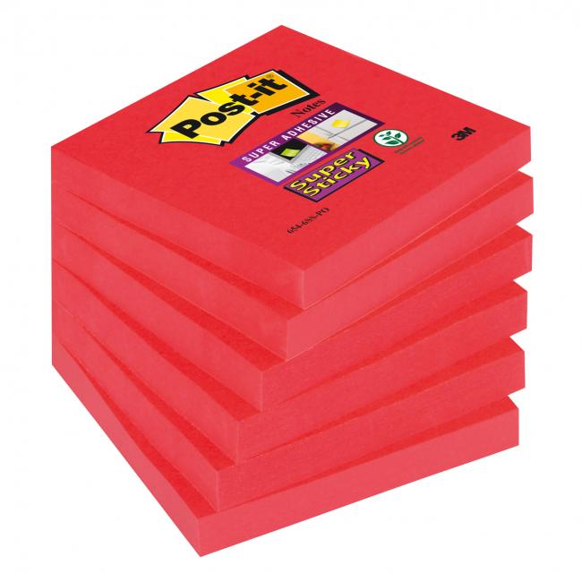 Bločky Post‑it® Super Sticky™ so špeciálnym lepidlom, vďaka ktorému držia aj na nerovnom povrchu. Po odlepení nezanechávajú stopy po lepidle. Farba oranžová. Rozmery 76 x76 mm. Počet lístkov 6 x 90.