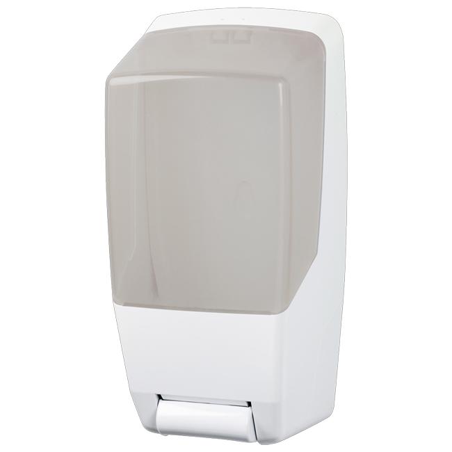 Dávkovač na abrazívne mydlo. Celoplastový, biely, s plexisklovým priezorom, ľahko ovládateľný a nenáročný na údržbu.