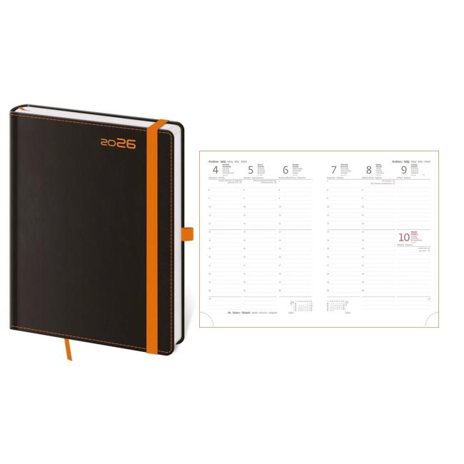 Diáre Black Red, Black Green, Black Orange, Double Blue, Double Black Dosky diára sú zhotovené z matného materiálu na báze zušľachteného papiera, ktorý je bez štruktúry a tým neruší vzhľad samotného produktu. Diár je doplnený o gumičku na uzavretie a pútko na perá, kompletný dizajn dopĺňa obšitie dosiek nití. Diár obsahuje: osobné údaje, plánovač dovolenky (mesačný prehľad), plánovací kalendár, telefónne predvoľby, štátne sviatky Českej a Slovenskej republiky, medzinárodné sviatky, ročný výhľad, týždenný layout, adresár, mapa Európy a Českej a Slovenskej republiky