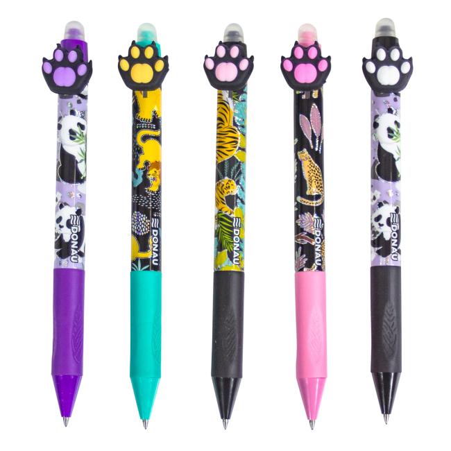 Toto gélové pero je nevyhnutnosťou v každom peračníku. Je vybavené farebným mechanizmom s odtlačkom labky pre jednoduché zasunutie a vysunutie náplne. Pogumované telo zaisťuje pohodlné uchopenie. Chyby sa dajú ľahko opraviť silikónovým hrotom a možno ich okamžite prepísať, znova a znova. Náplň má hrúbku 5 mm a je dostupná v rôznych farbách (modrá, ružová, tyrkysová, fialová), aby ladila s farbou pera.