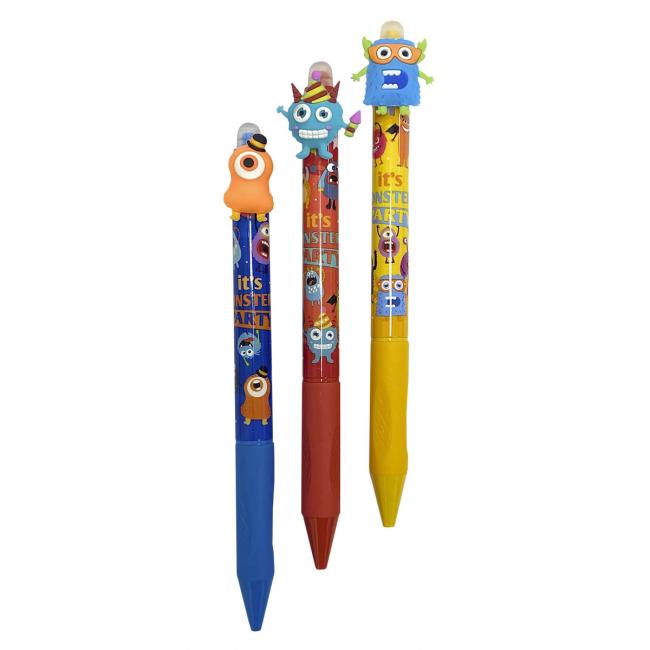- párty príšery v žltej, modrej a červenej farbe