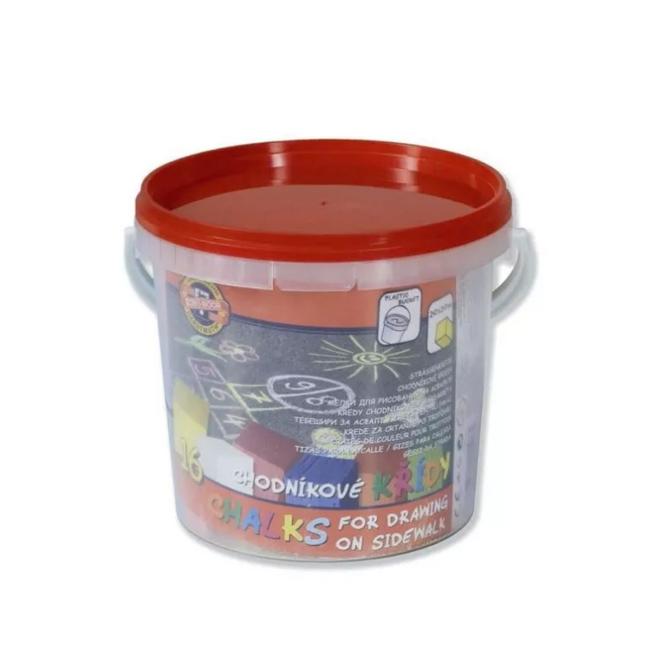 Sada 16 kusov (6 farieb) štvorcovej kriedy 20 x 20 x 100 mm, v plastovom vedierku s vekom, na kreslenie po chodníkoch a iných asfaltových alebo betónových povrchoch