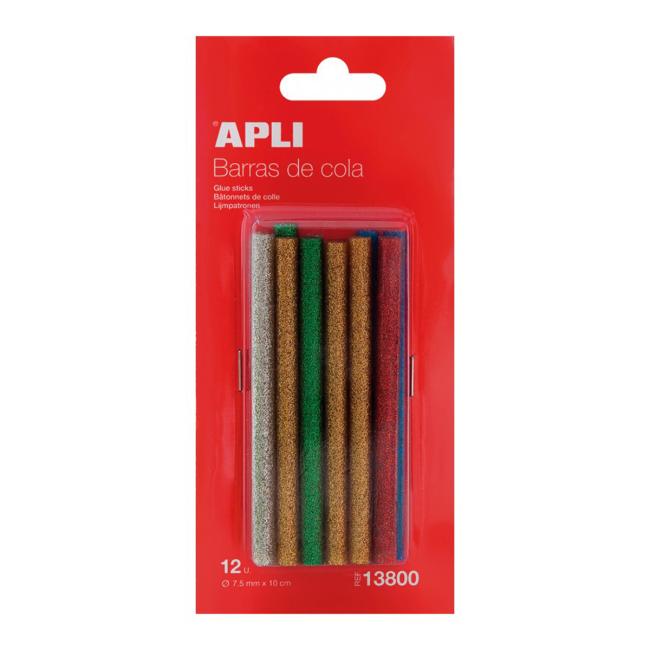 Náhradné tavné tyčinky rôznych trblietavých farieb Ø 7,5mm x 10cm, 12 tyčiniek