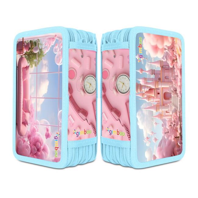 Školský peračník s výbavou v 3 priehradkách. Sada obsahuje: pravítka, 3 perá, ceruzka, guma, strúhadlo, 16 fixiek, 16 pasteliek. Dizajn: sweet. Farba: ružová`.