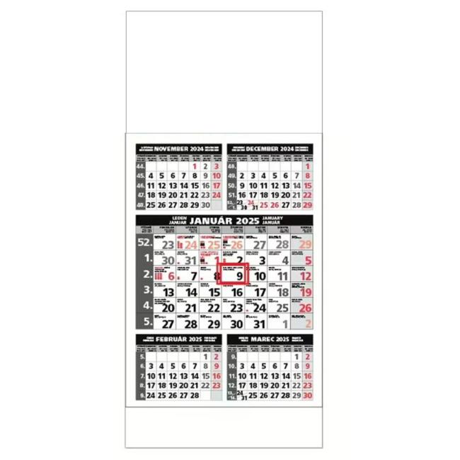 Plánovací kalendár s 5-mesačným kalendáriom s menami v SK+CZ, názvy mesiacov a dní v SK, CZ, UK, DE a HU.