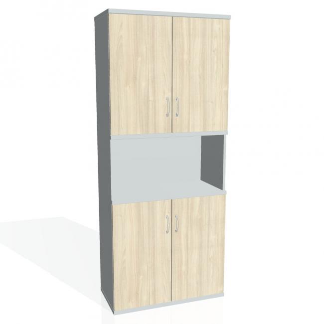 Kombinovaná skriňa - dvere/nika. Kancelárske skrine STRONG majú robustnú konštrukciu a vyššiu nosnosť políc ako bežné kancelárske skrine.V ponuke sú skriňové moduly s výškou 185 cm, 111 cm alebo 74 cm a šírky 80 cm alebo 40 cm.Hĺbka všetkých modelov skriňového radu STRONG je 40 cm.