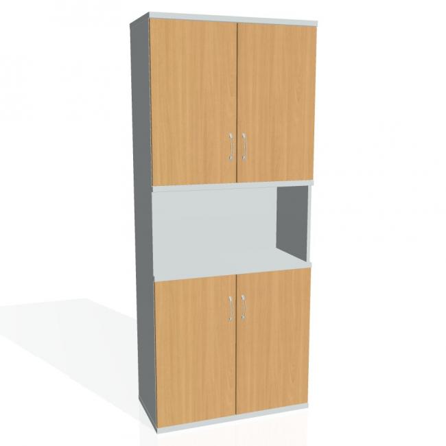 Kombinovaná skriňa - dvere/nika. Kancelárske skrine STRONG majú robustnú konštrukciu a vyššiu nosnosť políc ako bežné kancelárske skrine.V ponuke sú skriňové moduly s výškou 185 cm, 111 cm alebo 74 cm a šírky 80 cm alebo 40 cm.Hĺbka všetkých modelov skriňového radu STRONG je 40 cm.