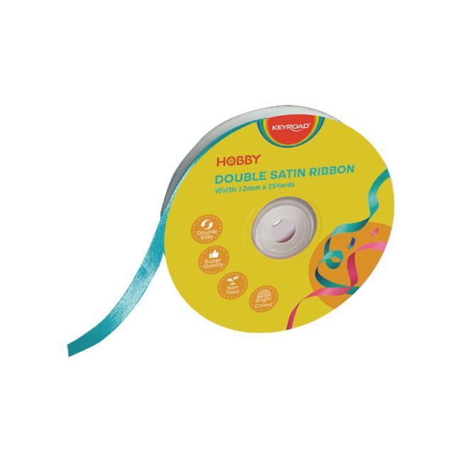Vysoko kvalitná stuha, saténová, dvojitá, netoxická, na cievke. Rozmery: 12mm x 22,86m. Farba: modrá.