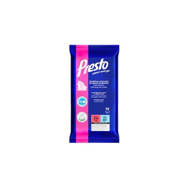 PRESTO ANTISTATIK VLHČENÉ UTIERKY 72 ks. Presto Clean vlhčené utierky antistatické sú navrhnuté na efektívne čistenie prachu a nečistôt z rôznych povrchov v domácnosti s antistatickým účinkom, ktorý zabraňuje opätovnému usádzaniu prachu. Tieto utierky sú ideálne na čistenie elektroniky, sklenených plôch, plastov a ďalších povrchov náchylných na prach, pretože pomáhajú predĺžiť čistotu a sviežosť týchto plôch. Vďaka svojmu zloženiu Presto Clean antistatické utierky účinne zachytávajú prach, špinu a iné nečistoty bez toho, aby po sebe zanechávali šmuhy či lepkavé stopy. Zároveň vďaka antistatickému účinku pomáhajú minimalizovať statickú elektrinu, čo znamená, že prach sa na čistené povrchy nebude tak rýchlo vracať. Používanie utierok je veľmi jednoduché a pohodlné, pričom zanechávajú príjemnú sviežu vôňu. Hlavné vlastnosti: Účinne odstraňujú prach a nečistoty Antistatický účinok zabraňuje opätovnému usádzaniu prachu Vhodné na elektroniku, sklenené, plastové a iné prachom náchylné povrchy