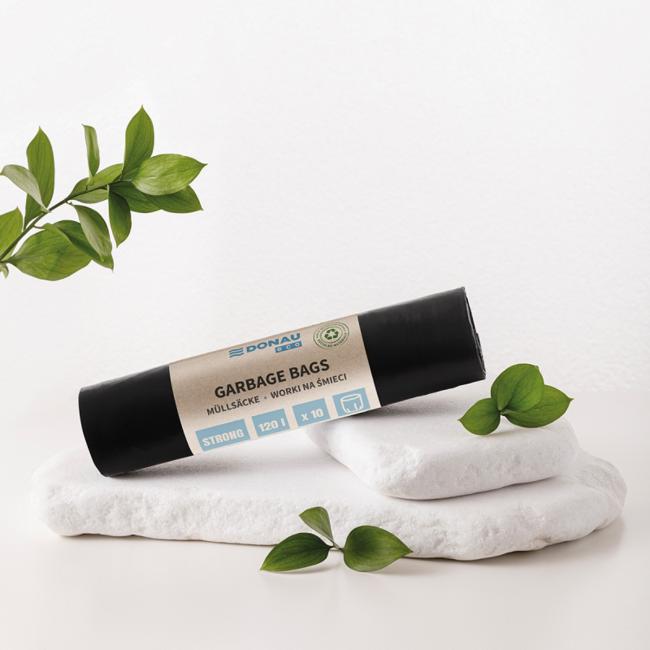 Extrémne odolné a roztiahnuteľné vrecia na odpadky vyrobené zo 100 % recyklovaného materiálu (LDPE).