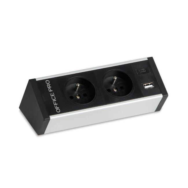 Zásuvkový pevný panel na hranu stola PECZ B 002 - čierna